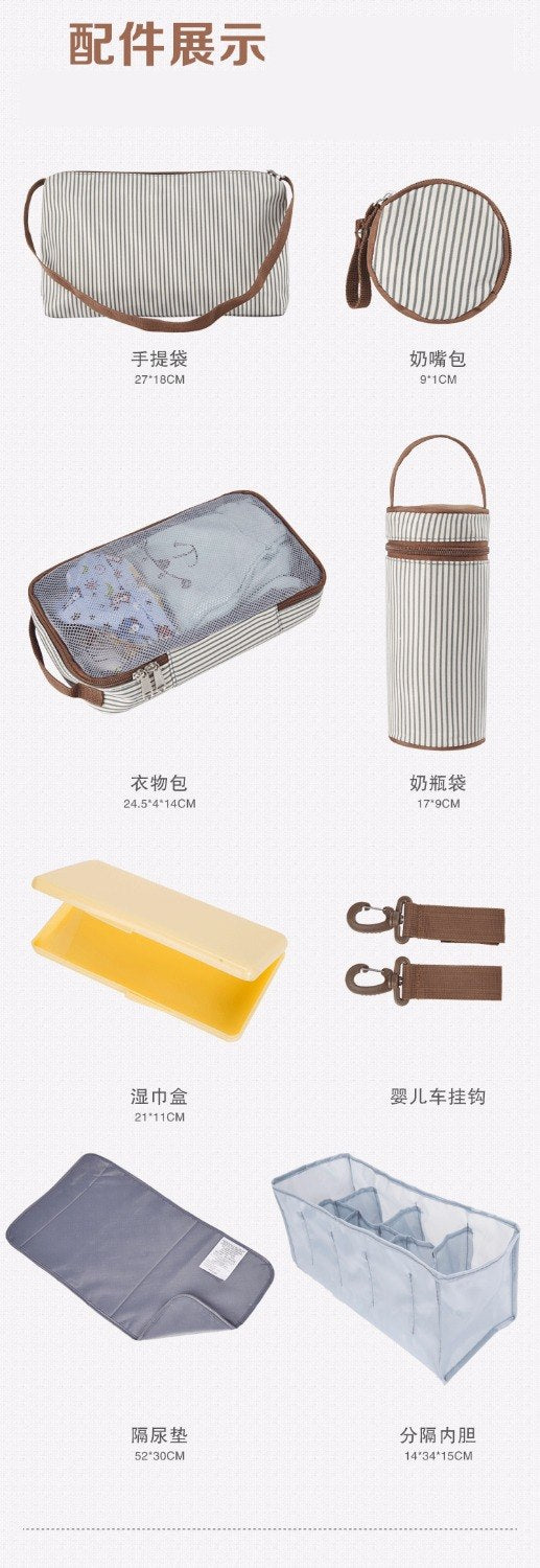 9pcs/set Maternity Diaper Nappy Bags with Stroller Hooks Baby Bottle Bag Tote Kids Clothes Pouch Nappy Changing Pad