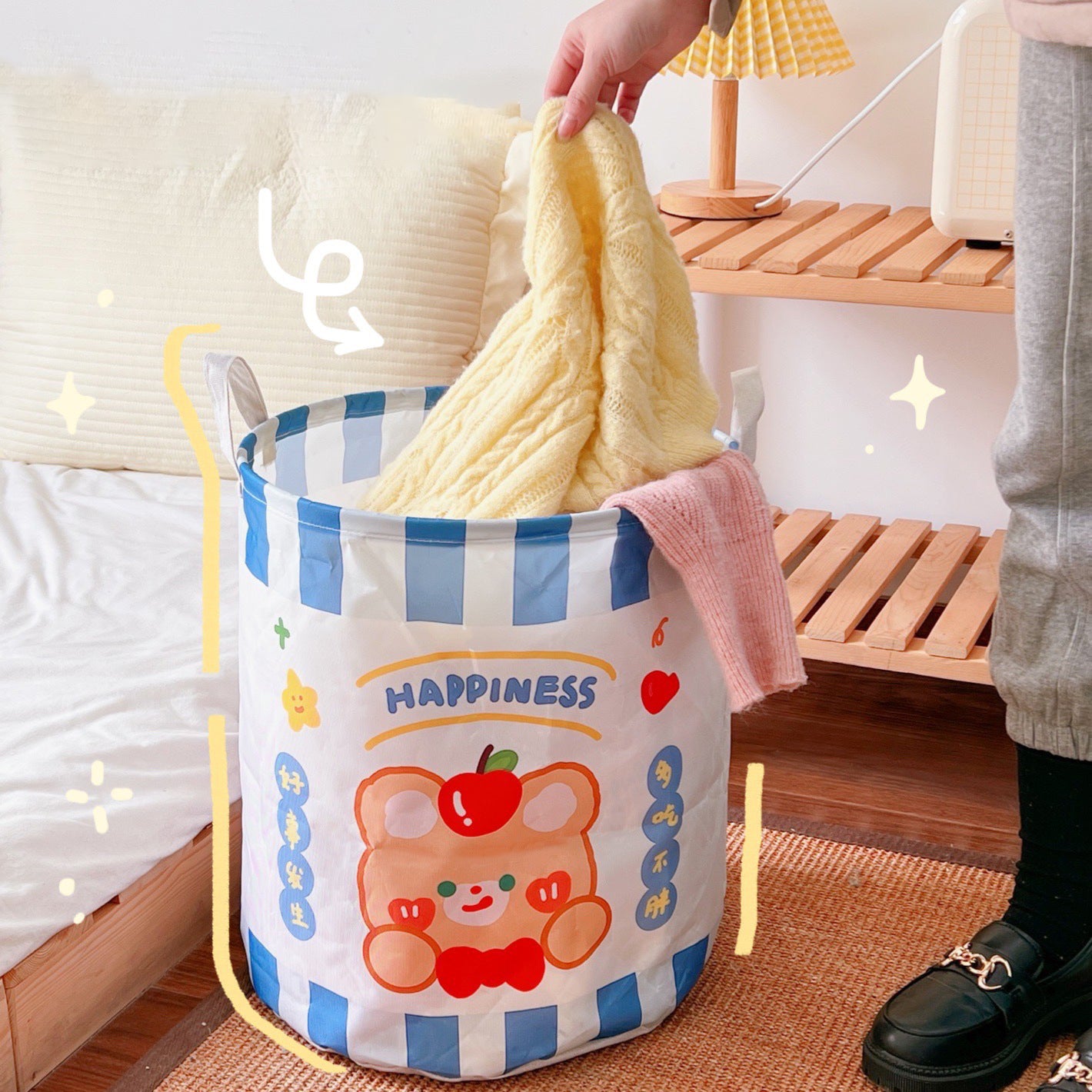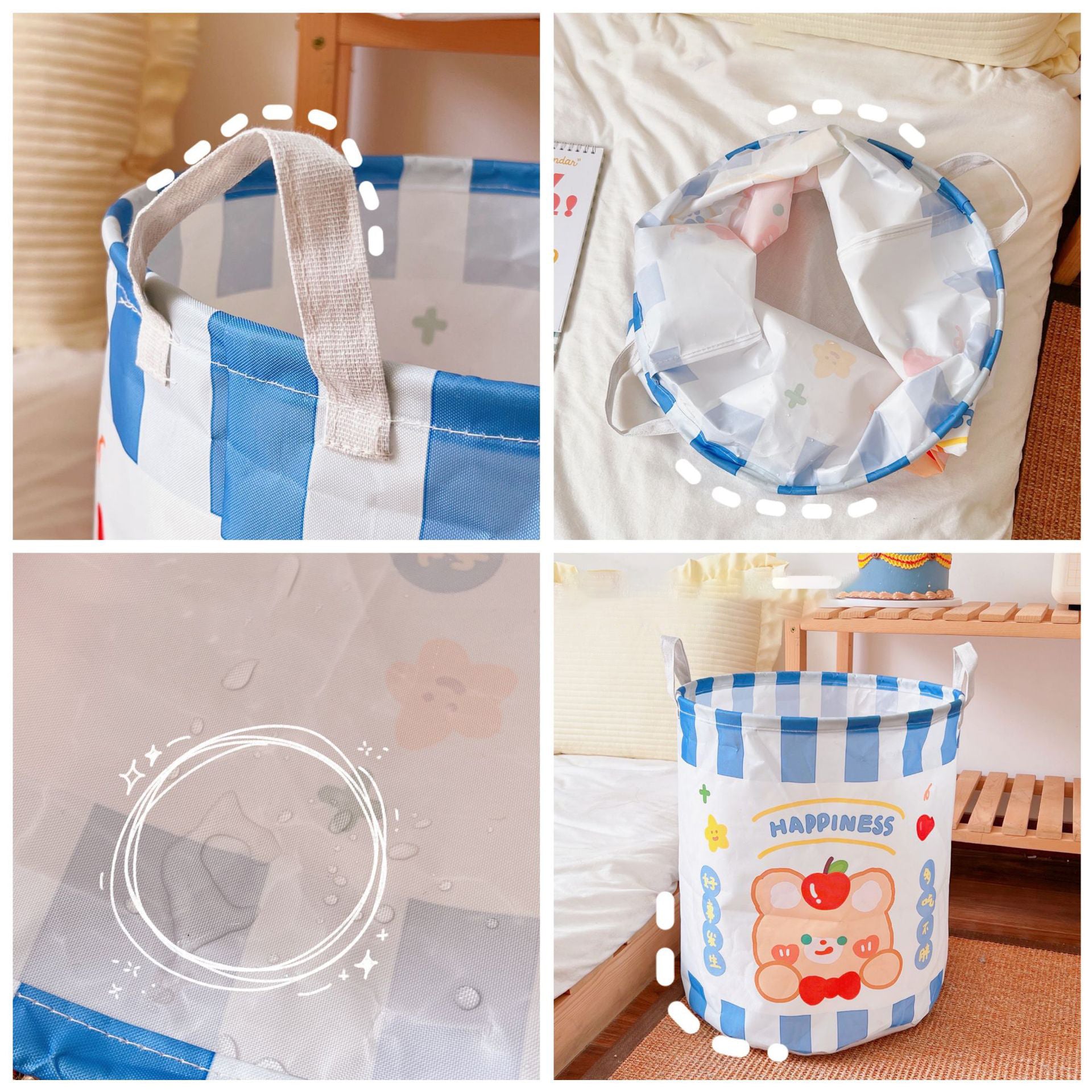Cute Foldable Dirty Clothes Basket Canvas Storage Basket Household Fabric Sundries Finishing Toys Large Storage Bucket