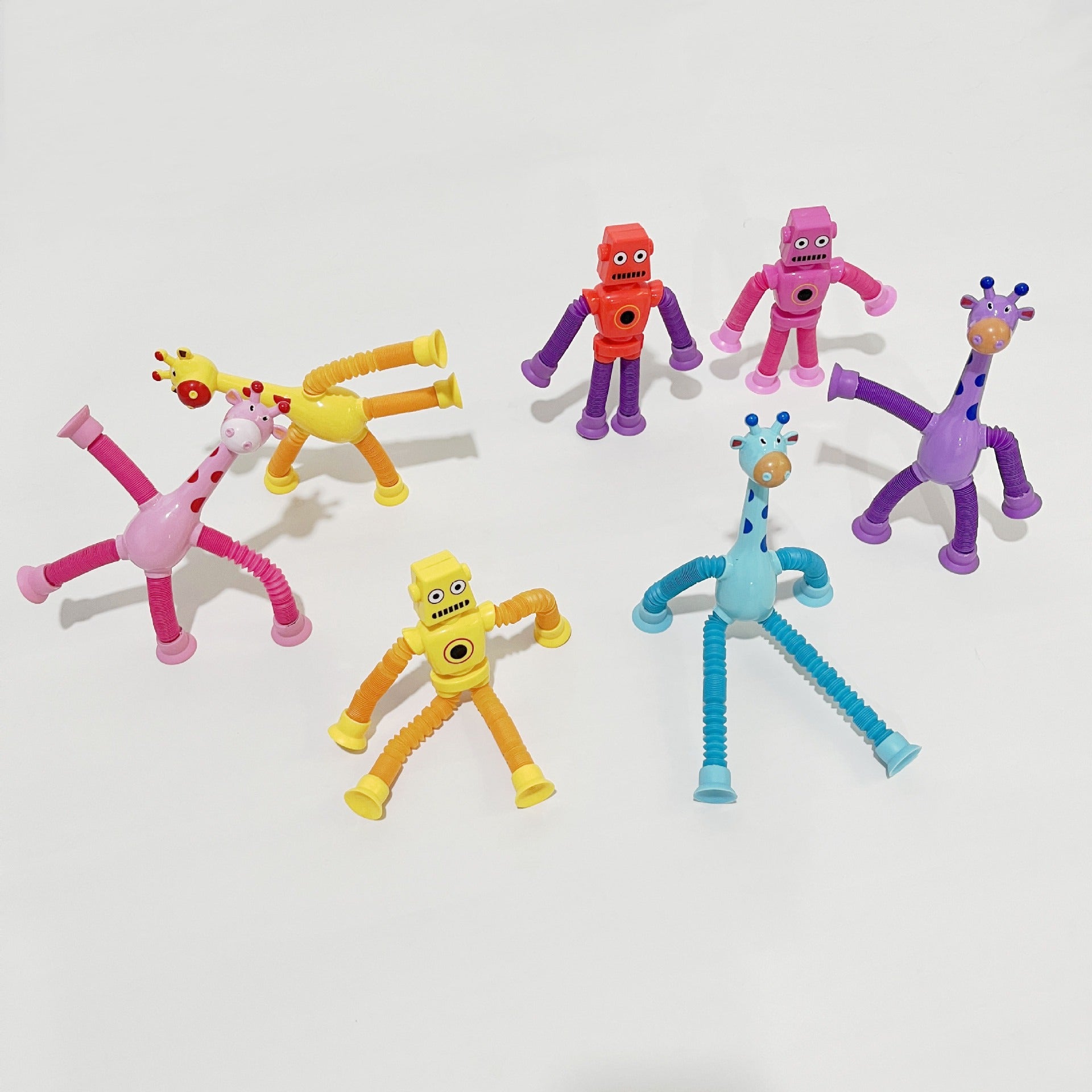 DIY Telescopic Pop Tube Giraffe Sensory Toys Kids Stress Relief Games Early Education Suction Cup Giraffe Playing Gifts