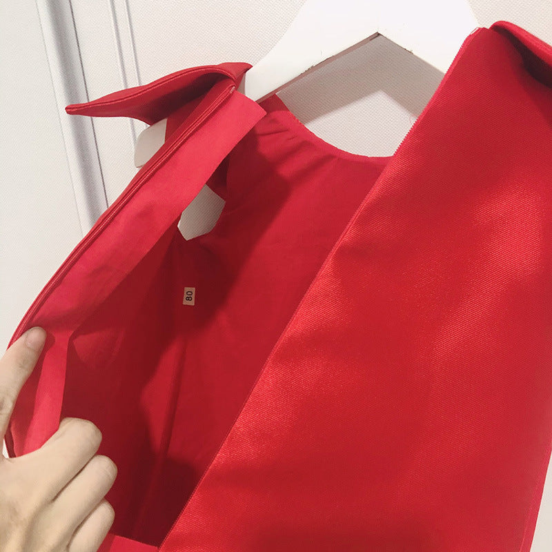Girls Vest Skirt Children Girl Baby One Year Old Dress Big Bow Princess Dress Handmade Pearl Diamond Dress