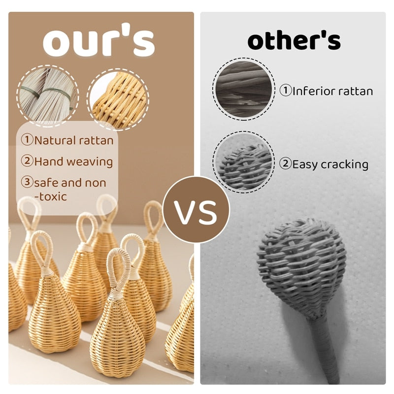 Handmade Rattan Rattles Educational Toys for Kids Crib Mobile Hand Bell Baby Accessories Infant Sensory Toy Baby Teether GIfts