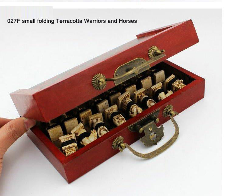 Terra Cotta Warriors, chess, three-dimensional characters, gifts, antique chess, small size, folding chessboard, chess, portable gifts