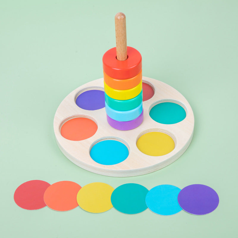Wooden children's early education foldable rainbow collar cultivates color cognition, coordination, and pairing with column toys