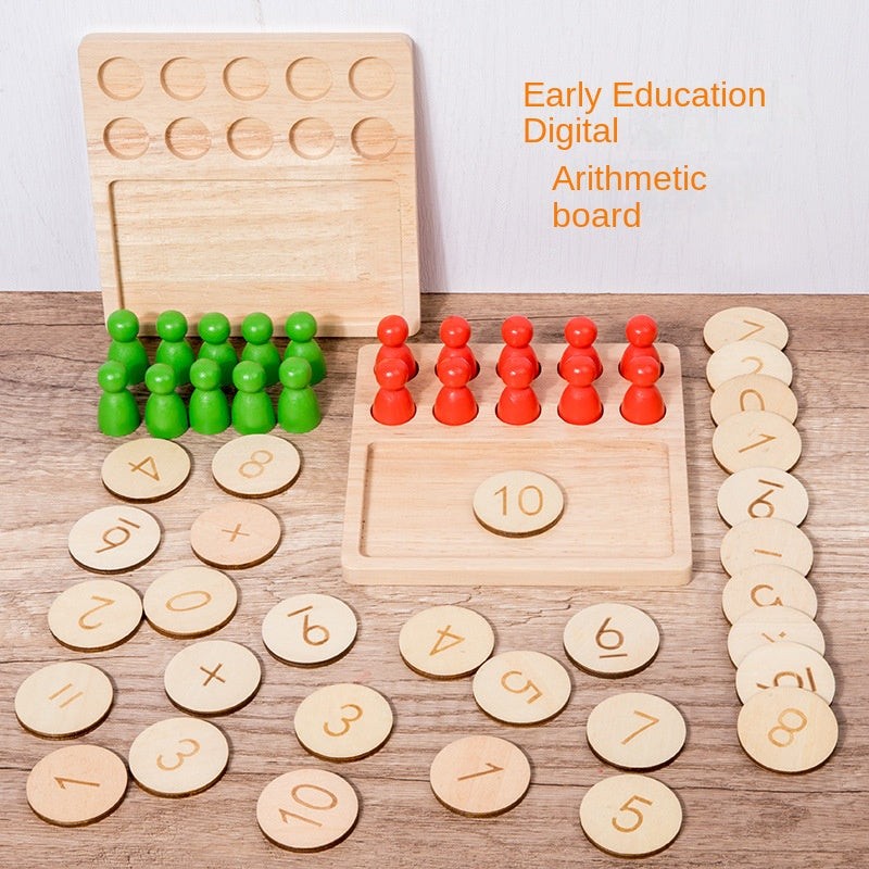 Wooden children's early education numerical arithmetic ten grid array mathematics enlightenment color small person pairing puzzle toy